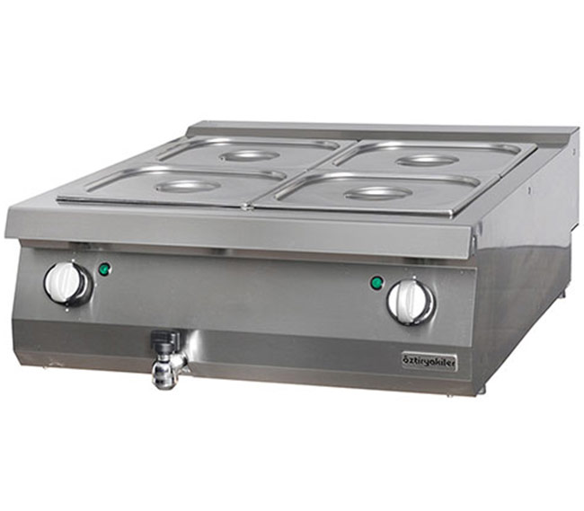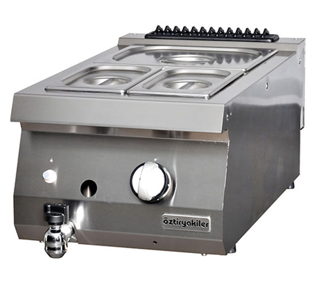 Cihaz ebatlarına göre benmari havuzu 1 veya 2 adet GN 1/1 küvet alır.40’lık ürünlerde 1 adet.80’lik ürünlerde 2 adet küvet kullanılır.